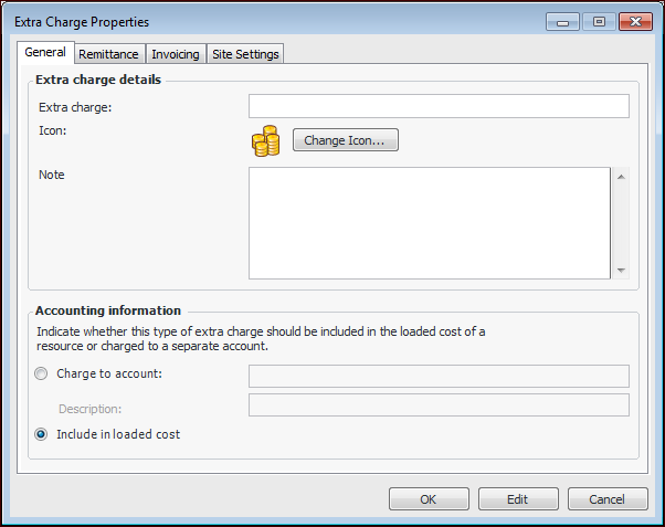 3. Click New. The Extra Charge dialog appears.