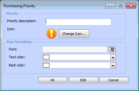 3. Click New. The Purchasing Priority dialog appears.