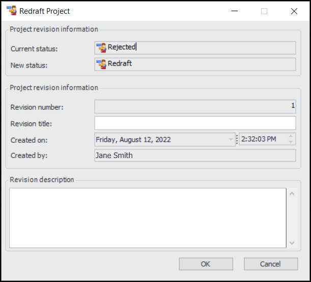 5. Click OK. You can change the project according to the activities allowed by the new status. Then you can send the project for approval again.
