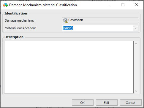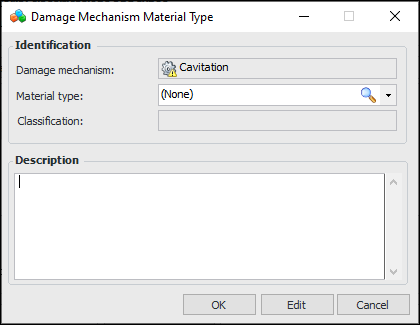 • For each classification that you wish to add, click New. The Damage Mechanism Material Classification dialog appears: