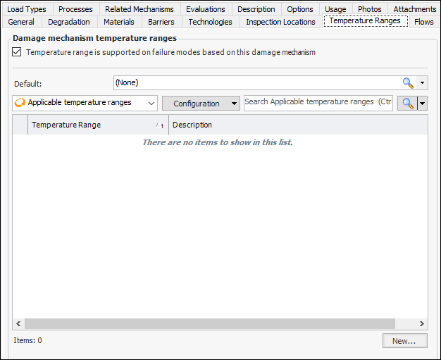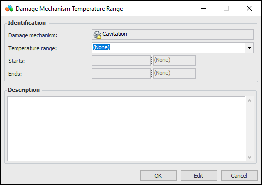 2. For each temperature range, click New. The Damage Mechanism Temperature Range dialog appears.