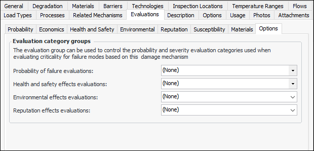 1. In the Failure Mode window, select the Related Mechanisms tab.To Set Options for Evaluations