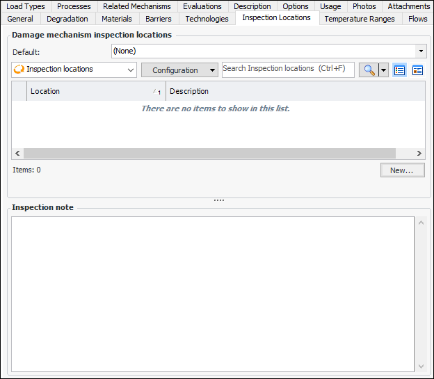 2. For each location that you wish to add, click New. The Damage Mechanism Degradation Location dialog appears.