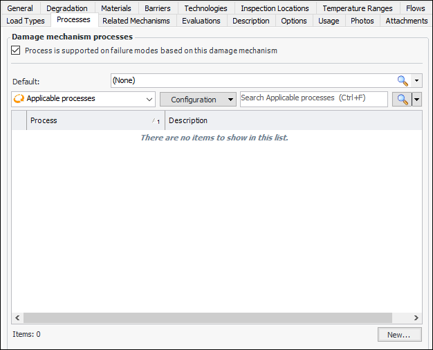 2. For each process, click New. The Damage Mechanism Process dialog appears.