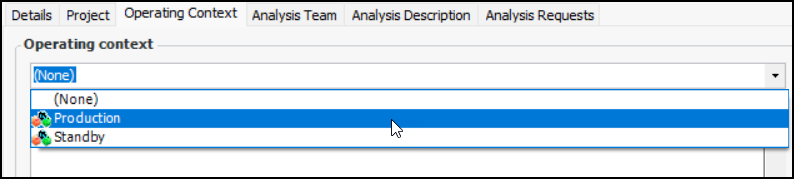 Note: Operating context values are defined at the site level, in the Strategy Development settings. For more information, see Setting up Operating Contexts.To Record the Assets’ Operating Context