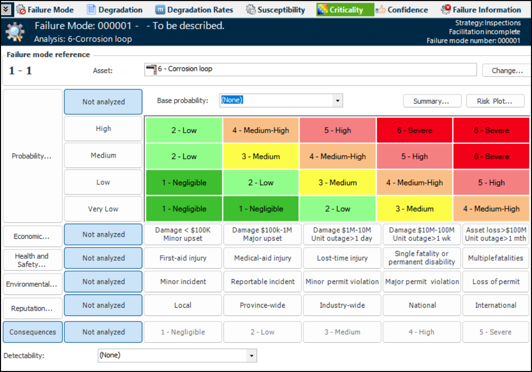 1. In the Criticality view, select the appropriate value from the Detectability list below the risk matrix. This number is used in the relative risk calculation.To Evaluate Confidence Factors