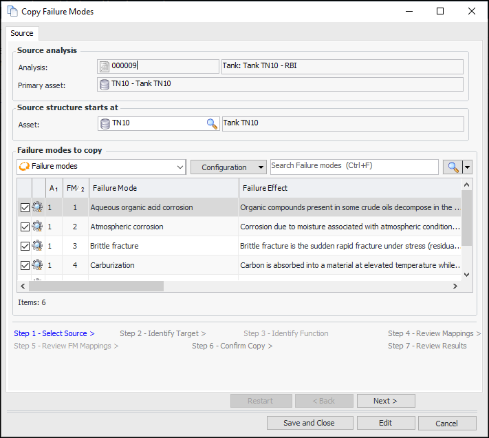 Copying Failure Modes to an RBI Analysis
