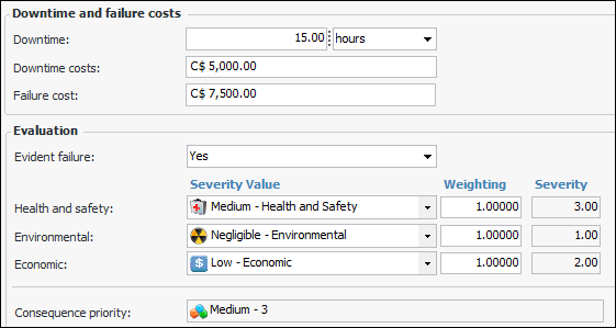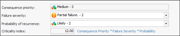 Note: If the failure references a failure mode, severity values are copied from the failure mode’s risk analysis to the failure’s Consequences tab.Criticality Index