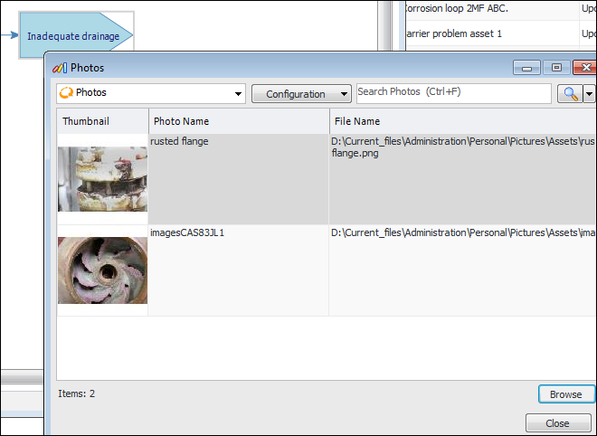 • Right-click an element and click Work with Photos. The Photos dialog appears, where you can view photographs attached to the element or browse for new ones.