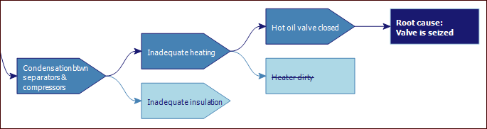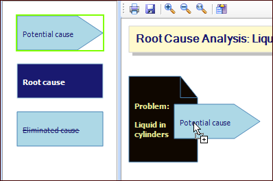 11. Identify a root cause by either dragging the shape to a parent element or right-clicking the element and clicking Mark as Root Cause. The element and its contributing causes change appearance accordingly. For example: