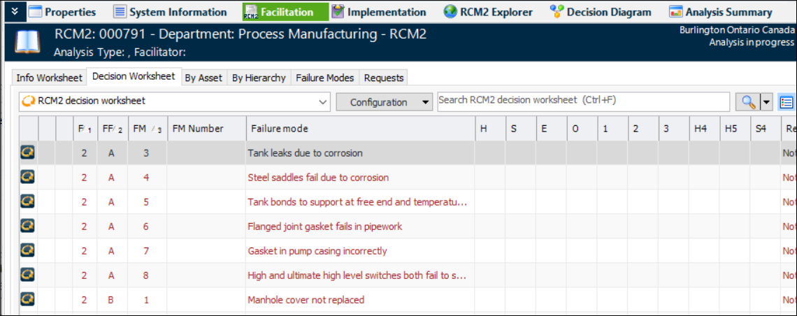 5. Click Analyze. The RCM2 Failure Mode Decision Logic window appears: