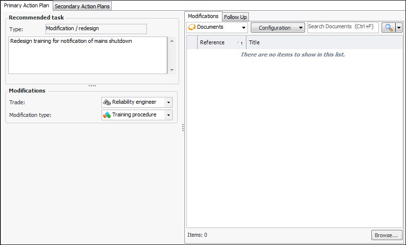 3. To link the action plan to an existing standard document, click the New list at the bottom of the tab and then click Browse. The Browse Documents dialog appears. For example: