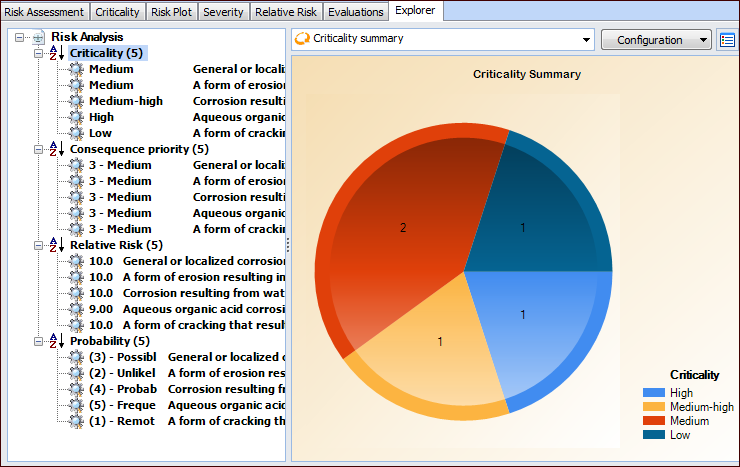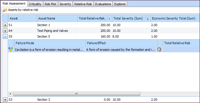 This tab shows lists of failure modes for which probability, economic, health and safety, environmental, and/or reputation evaluations have been performed. Select the Evaluation Audit tab to view lists of failure modes for which evaluations have not been performed.Explorer