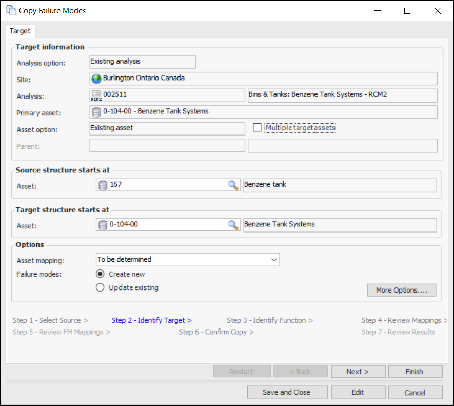 • Update existing – the source failure modes’ properties are copied to the target failure modes