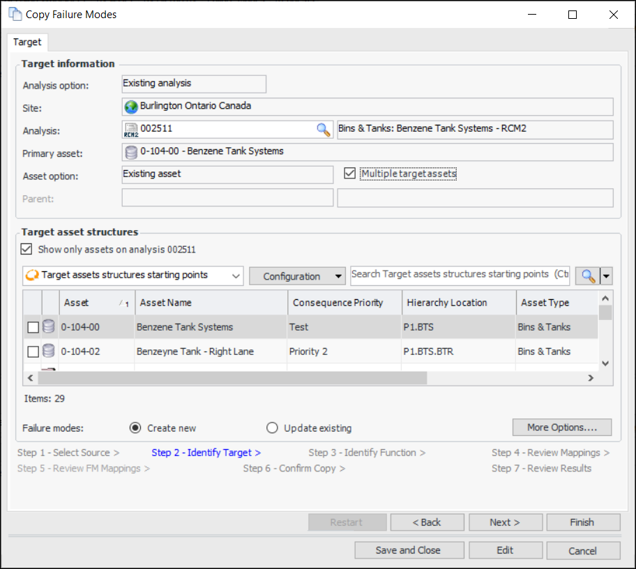 • Update existing – the source failure modes’ properties are copied to the target failure modes