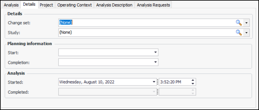 19. Select the Attachments tab to attach a document, note, or URL to the analysis. For more information about adding attachments, see Adding Attachments to Objects.