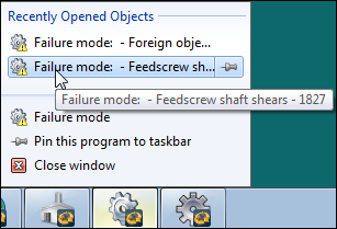 APM keeps a list of the objects that you have opened recently according to object type. You can access these lists from the APM icons in your desktop window’s Taskbar.To Open a Recently Used Object