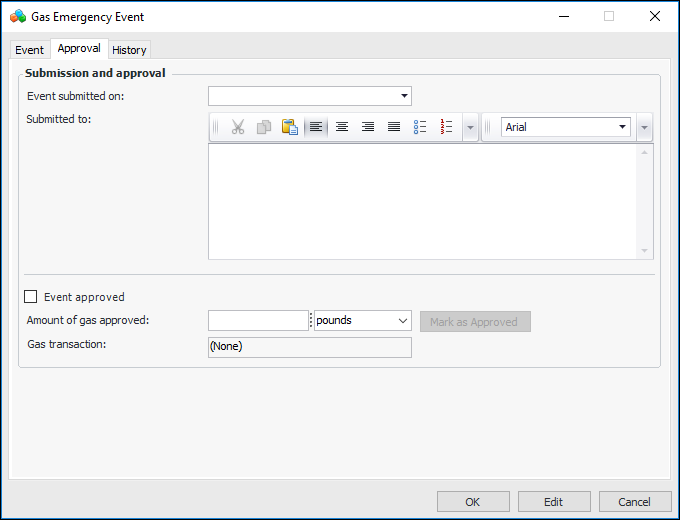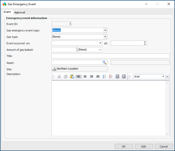 2. Click New. The Gas Emergency Event window appears: