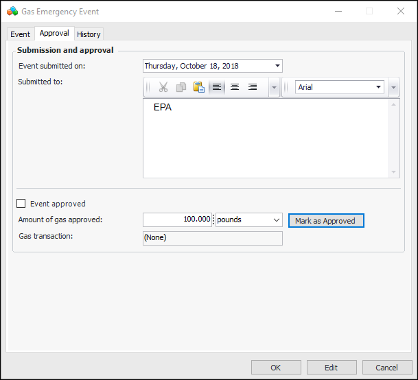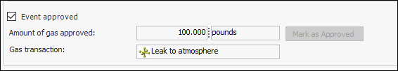 4. Enter the amount of gas that was approved. The Mark as Approved button becomes available. For example: