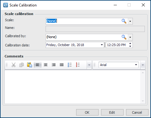 2. Click New. The Scale Calibration window appears. For example: