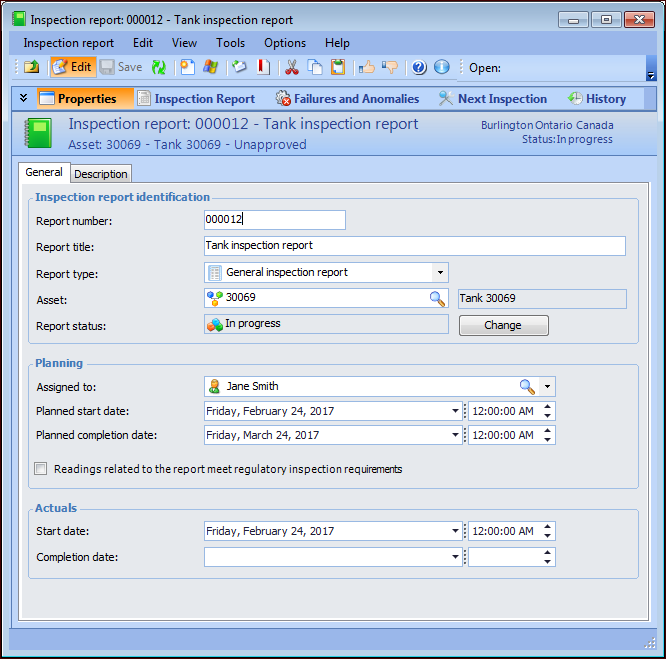 4. Click Change. The Change Inspection Report Status dialog appears. For example: