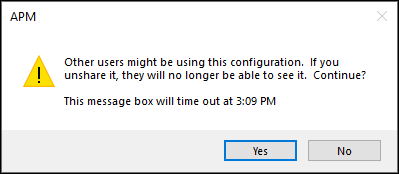 3. Clear the Share this configuration with other users option. A confirmation message appears: