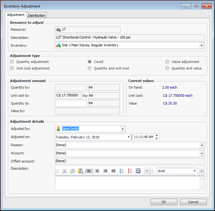 • Reason: Select the reason that the inventory was adjusted from the list.