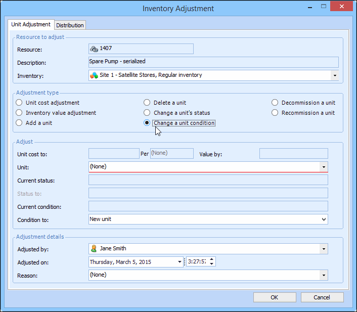 3. Right-click the resource that you want to change and select Adjust Item. The Inventory Adjustment dialog appears.