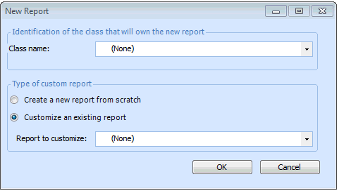 3. Click New Custom Report. The New Report dialog appears.