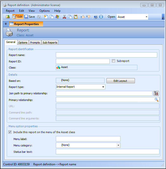 9. Save the report and then click Edit Layout to open the APM Forms Editor.