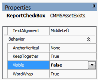 7. To hide the field in the body of the printed report, set the Properties panel, Behavior section, Visible option to False. You might want to do this if you are using a field only for filtering or sorting, or in the report’s header or footer.