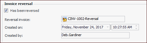 3. In the Reversal area, the original invoice’s invoice type is selected by default. You can change the type, but do not replace a regular invoice type with a credit type, or vice versa.