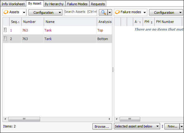 In some cases, assets are large enough to warrant separate analyses for different sections. For example, when the top portion of a large vessel contains gas and the bottom holds liquid, separate analyses or action plans are needed to define and respond to different failure modes and effects. In this case, you can select the analysis option Allow the scope of the analysis to be defined by asset.For an analysis asset, you can provide a description of the analysis scope. The same asset can be added to the analysis as many times as required, each with a difference scope description. You can then create failure modes for each of the analysis assets from the Facilitation view, By Asset and By Hierarchy tabs.To Enable Asset Scope on an Analysis