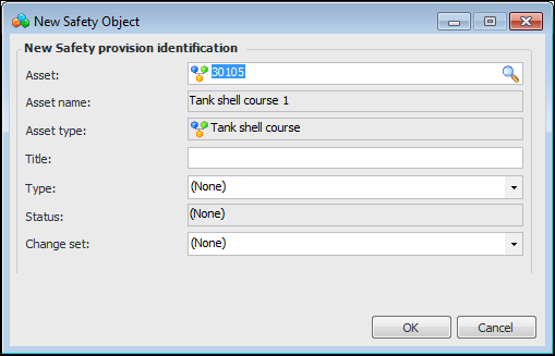 5. To create a safety provision, click the New list and then From Scratch. The New Safety Object dialog appears. For example: