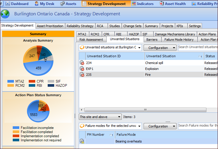 1. Select the site’s Strategy Development view, Strategy Development tab, and the Unwanted Situations tab. This tab shows the situations defined for the site. For example: