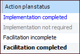 • To complete a failure mode, right-click it, click Mark As, and then Facilitation Completed, Implementation Completed, or Implementation Not Required.