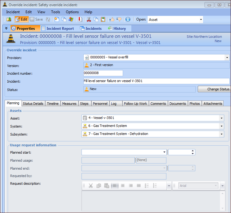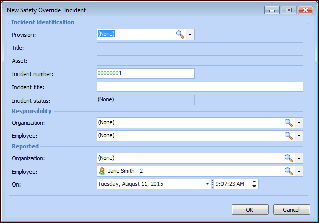 8. Click OK. The dialog closes and the Safety Override Incident window appears. For example: