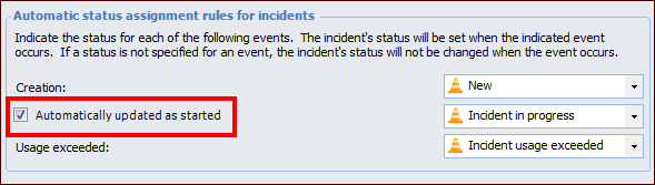 17. The Incident started boxes display the date and time when the incident is updated as started. In this example, the incident’s life cycle has not started.