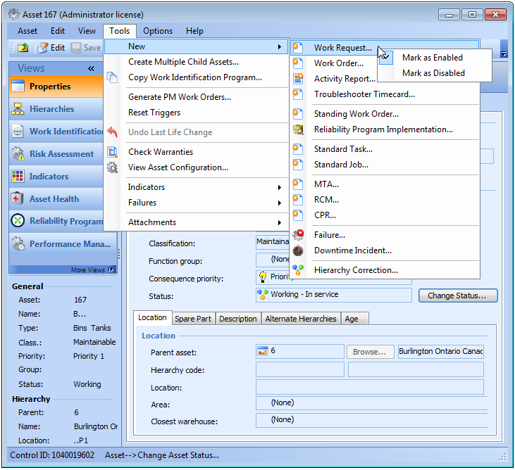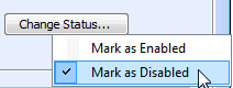 When you are in Security Setup mode, you can directly change the security settings for any action by right-clicking on the action, such as a menu item or a button. For example, to change security for a menu item, you would navigate to the appropriate menu, right-click on the menu item and select either Mark as Enabled or Mark as Disabled.To Secure an Action
