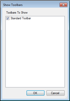 3. To hide the tool bar, clear the Standard Toolbar option. To show the tool bar again, select the option.