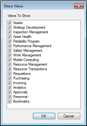 Concepts Tasks Selecting Views for the View Bar You can choose which views will appear in the view bar of the object window. To Select Views for the View Bar 1. Open the site or object window. 2. Click the Options menu and then Views. The Show Views dialog appears. 3. Select the views you want to add to the view bar or clear the views you want to remove. 4. Click OK.