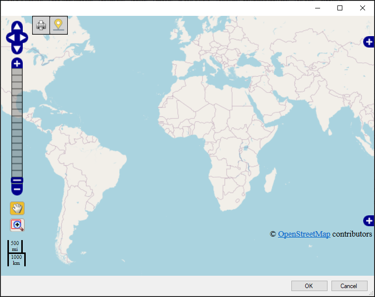 2. In the Map coordinates box, click the browse icon. A map appears. For example: