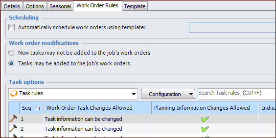 • New tasks may not be added to this job’s work orders. When a work order is created from this standard job, no tasks can be added to it.
