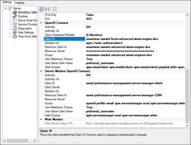 • Enter values in the Client ID, Redirect Uri, Resource Client Id, Resource Secret, and Scope properties.