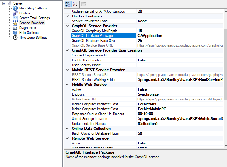 11. Under the Server node, click Service Providers. Scroll down to the GraphQL Service Provider section.