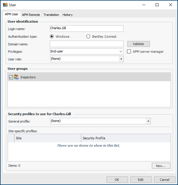 4. The User groups box displays the user groups of which this user is a member. For more information, see Creating User Groups.