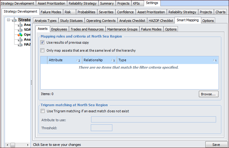 5. Select the Options tab and follow the instructions in Setting Smart Mapping Options for Failure Mode Copying.