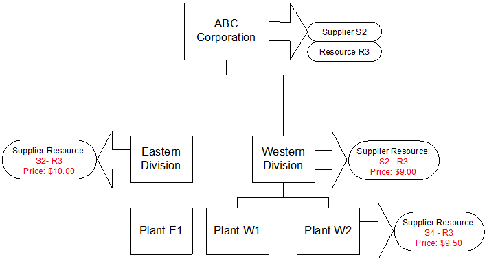 • If no supplier resources exist at the demand’s site, the system reviews resources at sites higher up the site hierarchy (parent sites) until a site is located with a supplier resource. The supplier resources from this site are then available for this demand.