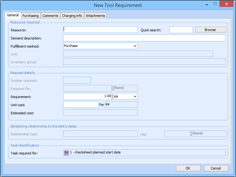 5. On the General tab, enter the resource or click Browse to select the tool from the list, and then click OK.