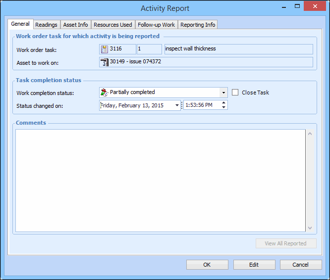 3. Click Report Activity. The Activity Report dialog appears. For example: